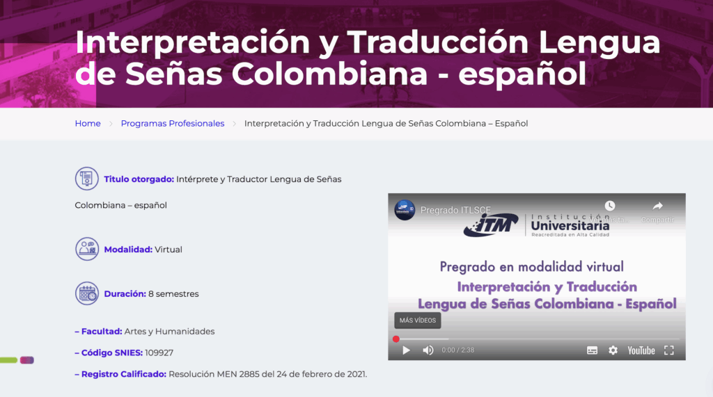Otorgamiento del registro calificado por parte del MEN a la Institución Universitaria ITM para la operación del programa de Interpretación y Traducción Lengua de Señas Colombiana-español